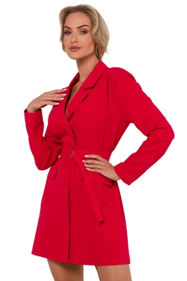 Sukienka żakietowa z kołnierzem i paskiem w talii czerwona