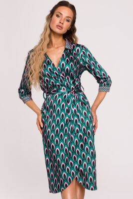 ( ilość produktów: 508 )Satynowa sukienka kopertowa z dekoltem V i wiązaniem różowa