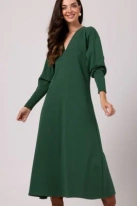 Sukienka kopertowa z wiązaniem w talii dekolt V butelkowa zieleń