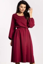 Sukienka elegancka ołówkowa z szerokimi rękawami czerwona z pelerynką