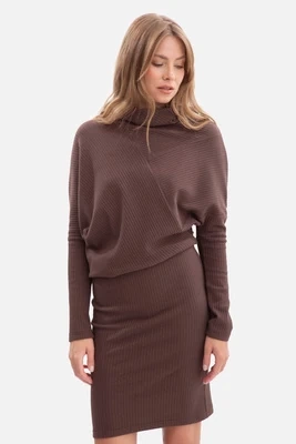 Sweterkowa sukienka z dekoltem V i modnym splotem beżowa