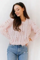 Sweter damski z wełną okrągłym dekoltem i pięknym splotem różowy