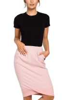Spódnica ołówkowa dzianinowa asymetryczna bombka pudrowy róż