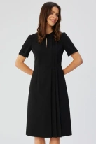 Elegancka sukienka midi z ozdobnymi zakładkami czarna