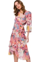 Sukienka szyfonowa w kwiaty z wycięciami na ramionach zielona