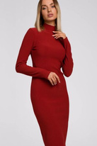 Sukienka dzianinowa midi z golfem dopasowana ceglasta tuba