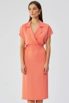 Elegancka sukienka z kopertowym dekoltem i kołnierzem zielona
