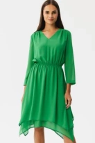 Rozkloszowana sukienka kopertowa z wiązaniem w pasie khaki