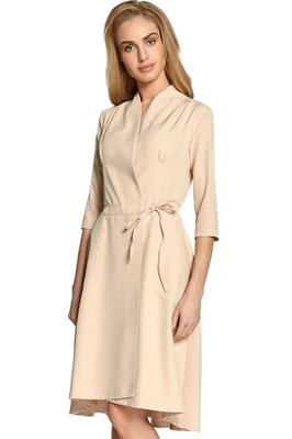 ( ilość produktów: 76 )Sukienka trapezowa kopertowa z paskiem i kieszeniami beżowa