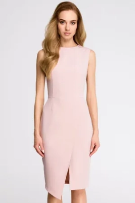 Elegancka sukienka ołówkowa midi dopasowana bez rękawów różowa