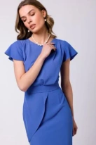 Sukienka elegancka kopertowa z bufiastymi rękawami śliwka