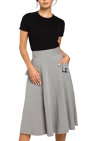 Spódnica rozkloszowana z wysokim stanem i kieszeniami szara