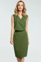 Sukienka elegancka ołówkowa do pracy kopertowy dekolt zielona
