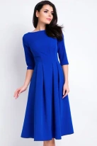 Elegancka sukienka rozkloszowana midi z kontrafałdami niebieska