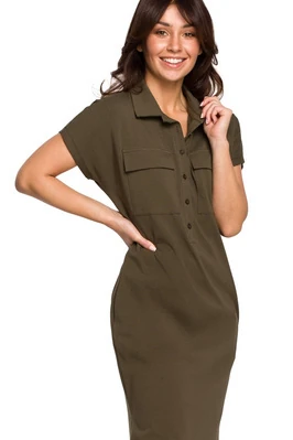 ( ilość produktów: 271 )Sukienka koszulowa trapezowa granatowa szmizjerka z wiązaniem