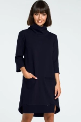Trapezowa sukienka dresowa z golfem i długim rękawem granatowa