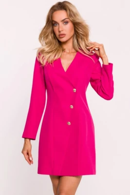 Sukienka żakietowa kopertowa z paskiem w talii pudrowy róż