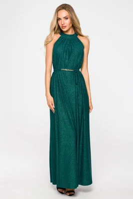 Wieczorowa sukienka cekinowa z dekoltem V z tyłu szampan