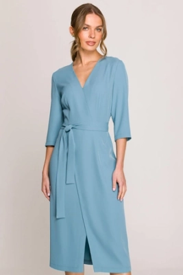 Elegancka sukienka ołówkowa z dekoltem V z tyłu niebieska