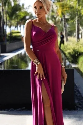 ( ilość produktów: 39 )Długa sukienka na wesele rozkloszowana na ramiączkach fuksja