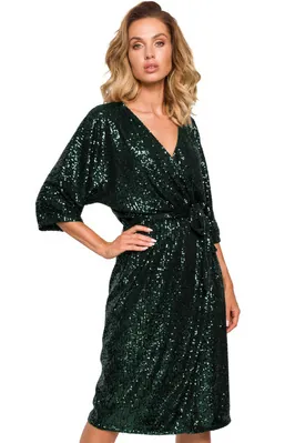 Sukienka wieczorowa cekinowa kopertowa z dekoltem V czarna