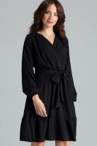 Sukienka boho rozkloszowana kopertowa midi z falbaną czarna
