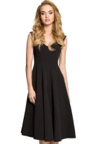 Lniana sukienka trapezowa na lato bez rękawów czarna z guzikami