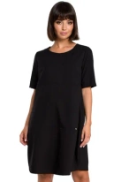 Lniana sukienka na lato bombka oversize z kieszeniami czarna