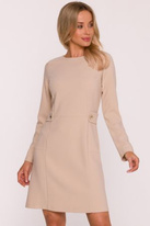 Sukienka trapezowa z kontrafałdą i dekoltem z tyłu na lato pudrowy róż
