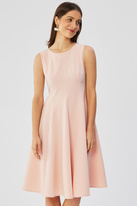 Sukienka trapezowa z kontrafałdą i dekoltem z tyłu na lato pudrowy róż