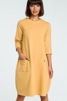 - Żółta sukienka dzianinowa - miękka, przewiewna sukienka wykonana z dzianiny, idealna na co dzień, na spacer, na spotkanie.