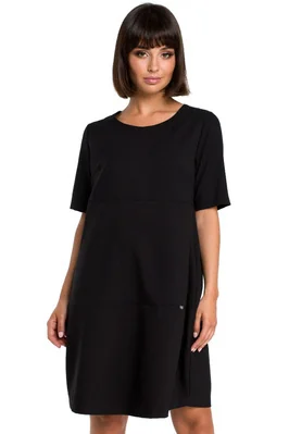 Sukienka trapezowa z dekoltem V bawełniana granatowa dzianina