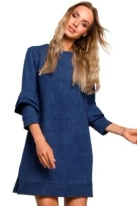 Sukienka trapezowa z bawełnianej dzianiny z nadrukiem jak jeans