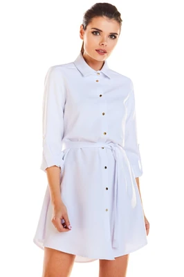 Sukienka koszulowa szmizjerka z paskiem i kołnierzykiem biała