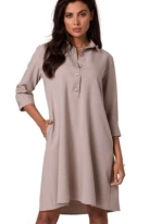 Swobodna sukienka z kołnierzykiem guzikami i kieszeniami róż