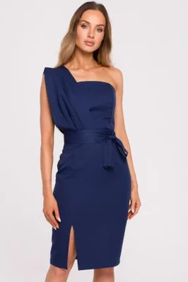 Sukienka koktajlowa ołówkowa asymetryczna gorsetowa granat