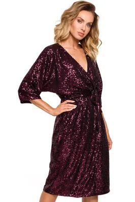 ( ilość produktów: 254 )Sukienka cekinowa midi z wiązaniem kopertowy dekolt bordowa