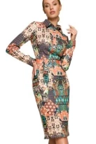 Sukienka elegancka ołówkowa z szerokimi rękawami czerwona z pelerynką