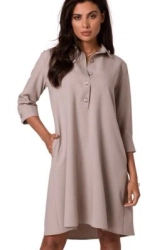 ( ilość produktów: 515 )Swobodna sukienka z kołnierzykiem guzikami i kieszeniami róż