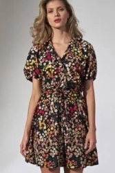 ( ilość produktów: 515 )Sukienka koszulowa w kwiaty rozkloszowana mini z wiskozy