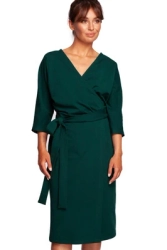 Elegancka sukienka żakietowa z guzikami i kołnierzem khaki
