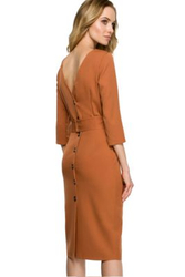 Sukienka ołówkowa midi z dekoltem V na plecach brązowa