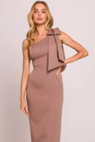 Elegancka sukienka ołówkowa na jedno ramię z kokardą j. beż