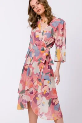 ( ilość produktów: 60 )Zwiewna sukienka szyfonowa kopertowa z wiązaniem pastelowa