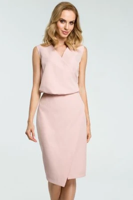 Sukienka elegancka ołówkowa do pracy kopertowy dekolt różowa