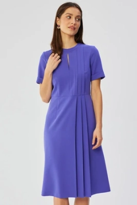 Elegancka sukienka midi z ozdobnymi zakładkami fioletowa
