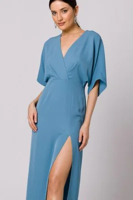 ( ilość produktów: 195 )Długa sukienka z dekoltem V i rozcięciem kimonowa niebieska