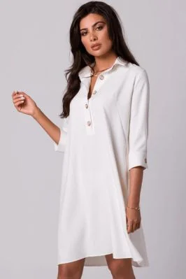 Swobodna sukienka z kołnierzykiem guzikami i kieszeniami róż