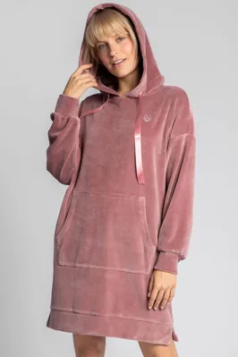 ( ilość produktów: 352 )Welurowa sukienka kangurka z kapturem bawełniana pudrowy róż