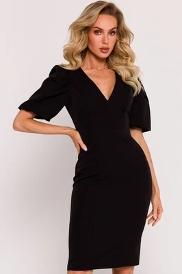 ( ilość produktów: 352 )Elegancka ołówkowa sukienka dekolt V bufiaste rękawy czerń